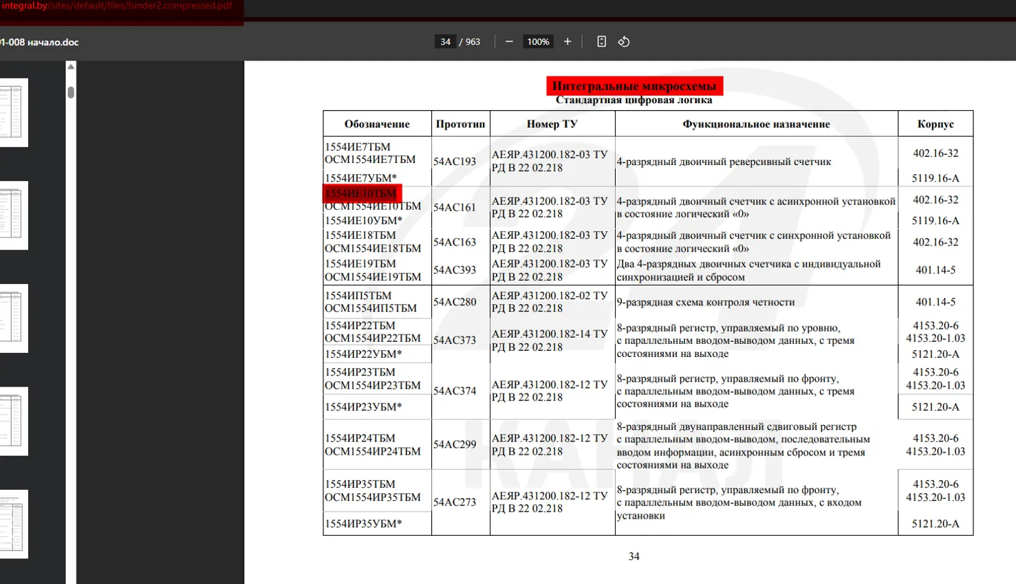Одна из микросхем, использованных для изготовления высотомеров / Скриншот из каталога продукции белорусского ОАО "Интеграл"