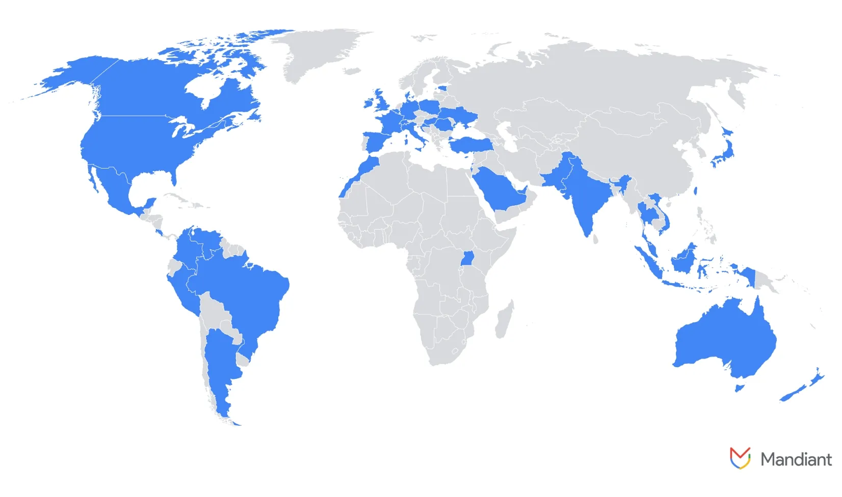 Страны, пострадавшие от представителей КНДР. Среди них и Украина / Инфографика Mandiant
