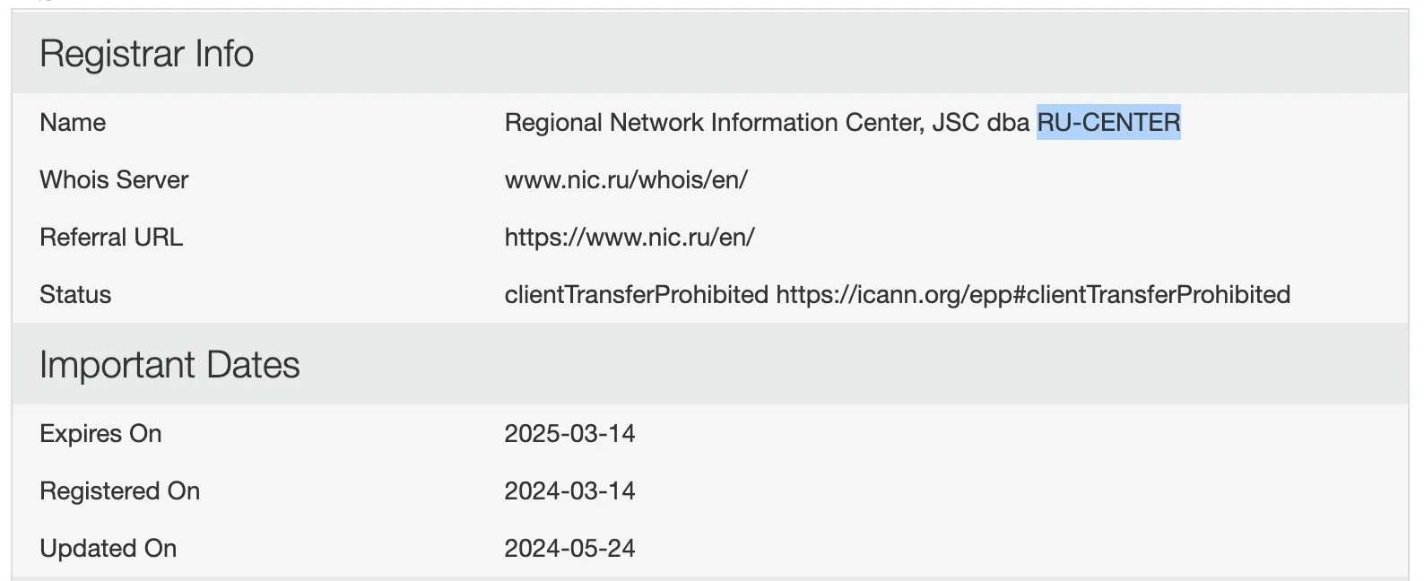 Местом регистрации сайта также указана Москва.