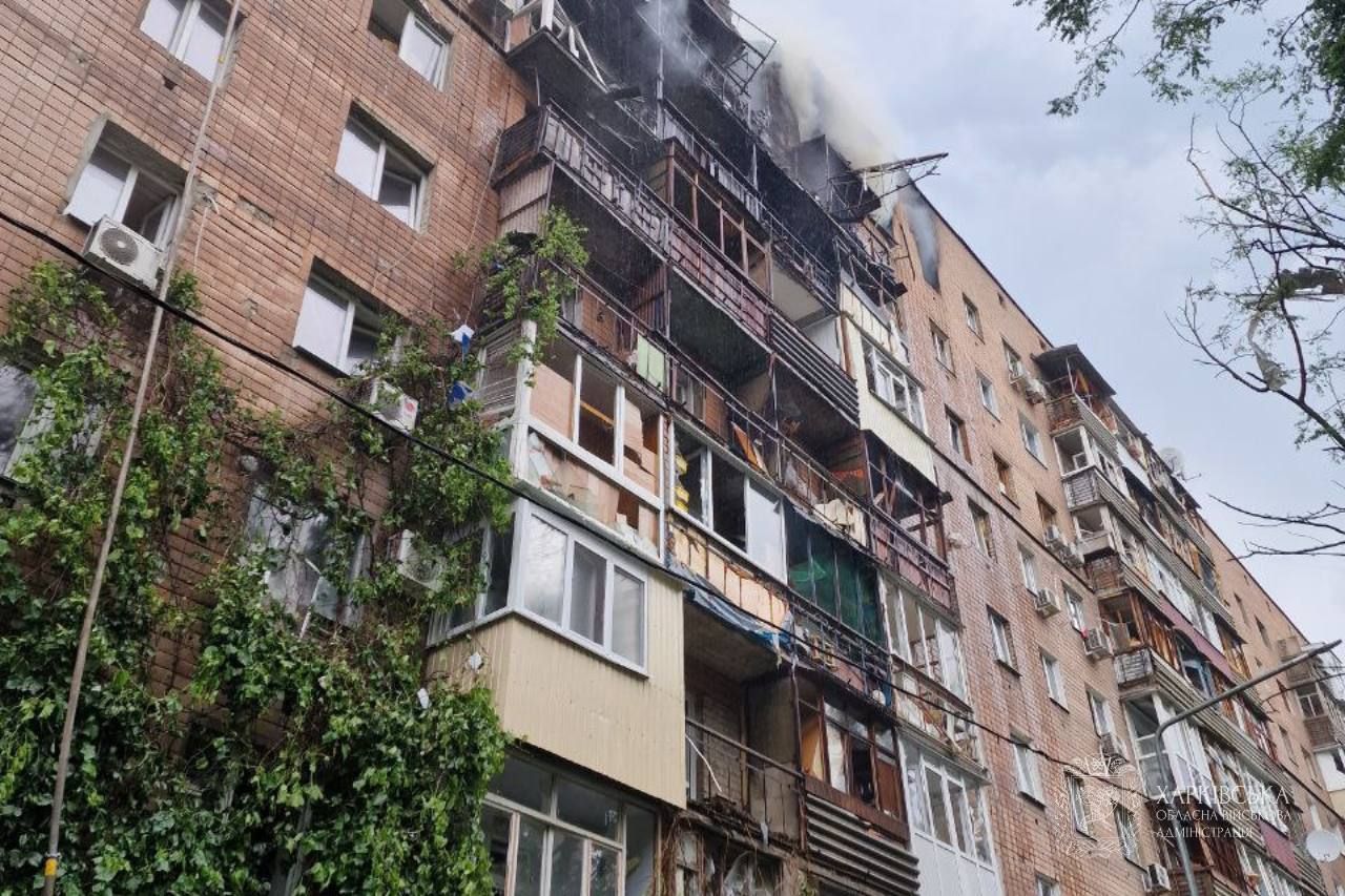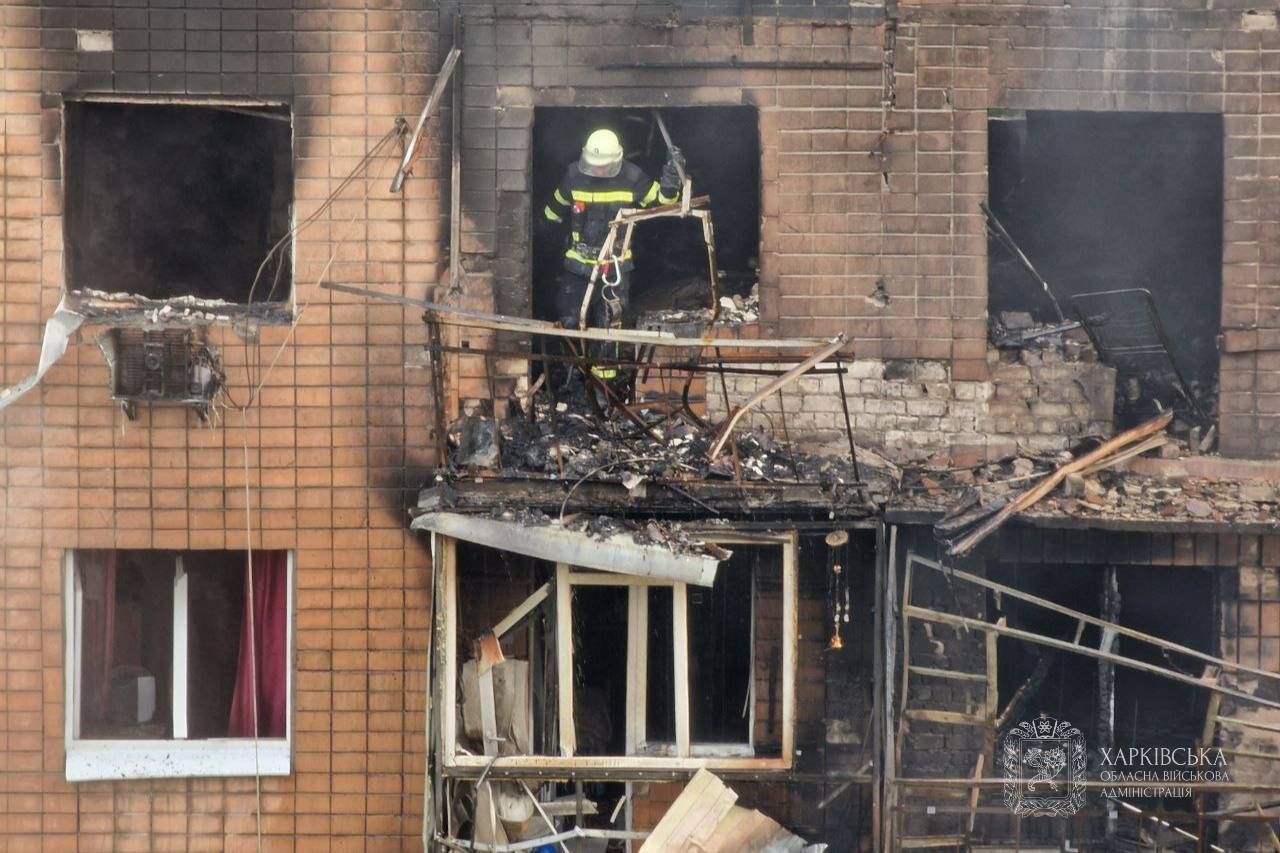 Один из российских БпЛА попал в многоэтажный дом в Основянском районе. Вспыхнул пожар в 12 квартирах на 7, 8 и 9-м этаже.