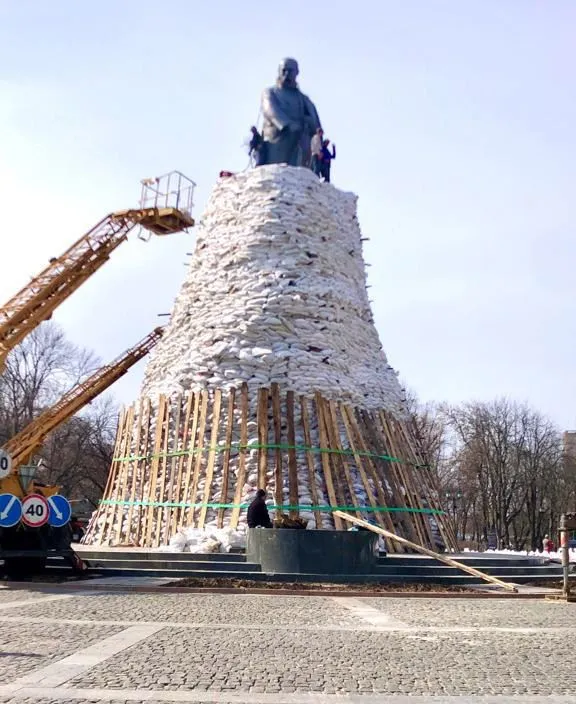 Мы закрываем памятник Шевченко, это один из символов Украины, один из самых красивых памятников Тарасу Шевченко вообще в мире, не только в Украине. Я решил, что мы сегодня обкладываем его мешками с песком,