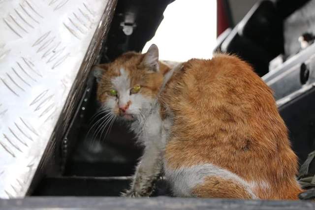 Теперь рыжий котик будет проживать вместе с пожарными / Фото ГСЧС