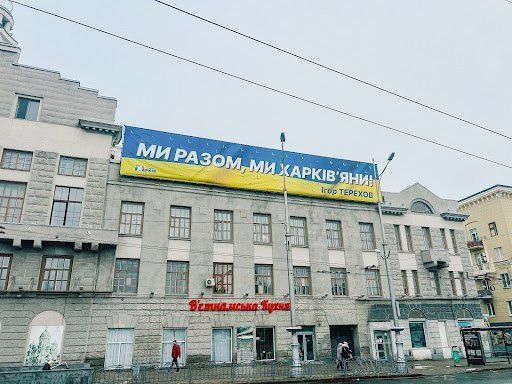 В течение последних месяцев в Харькове можно было увидеть билборды с именем Терехова четырех типов с пятью разными лозунгами: с акцентом на локальную идентичность "Горжусь быть харьковчанином", тематическое "Два праздника – одна сила" ко Дню независимости и Дню города и "Спасибо за украинский Харьков" ко Дню защитников и защитниц, "Харьков живет и работает", напоминающий любимый лозунг его предшественника Геннадия Кернеса "Любить Харьков – работать для людей", адаптированный под прифронтовую реальность, а также абстрактное "Харьков – больше, чем город!"