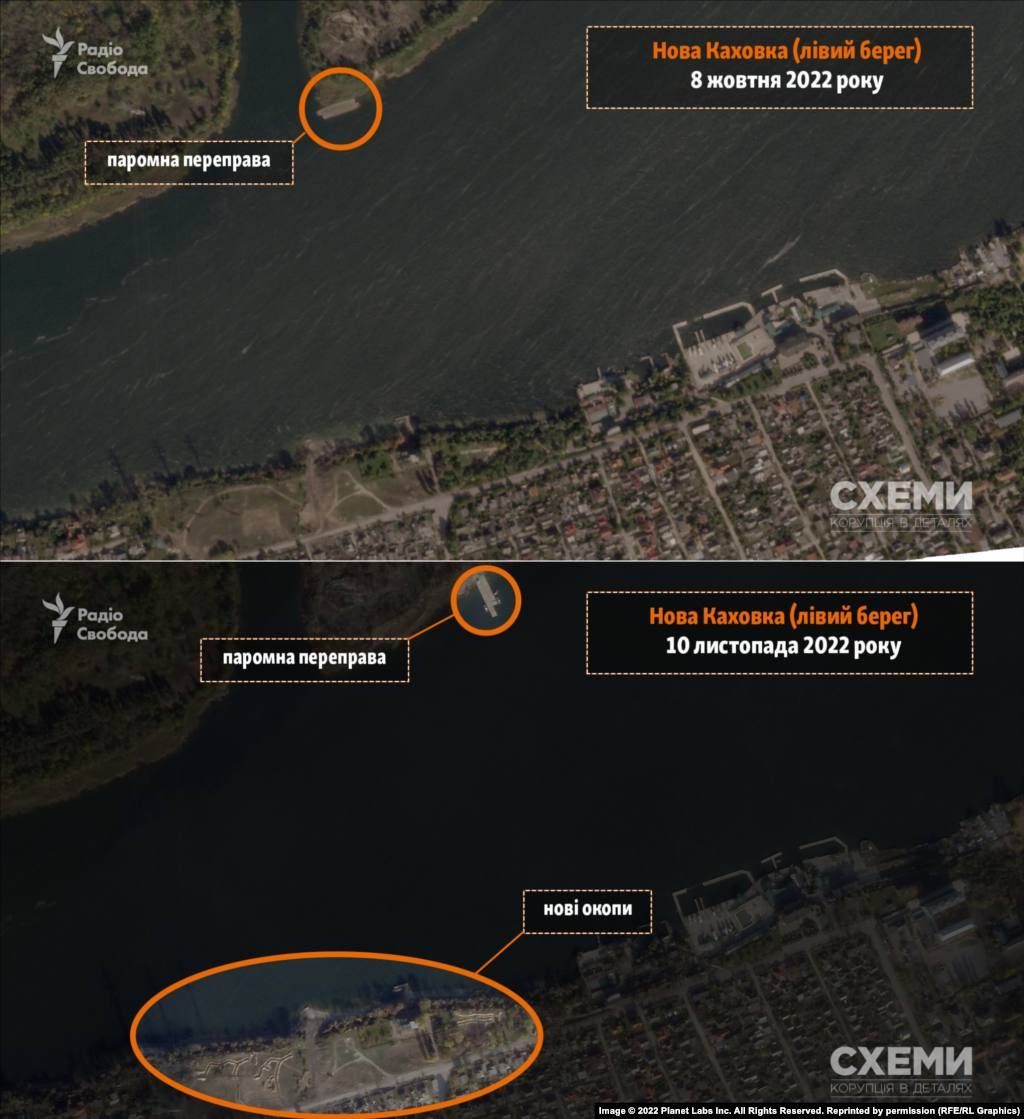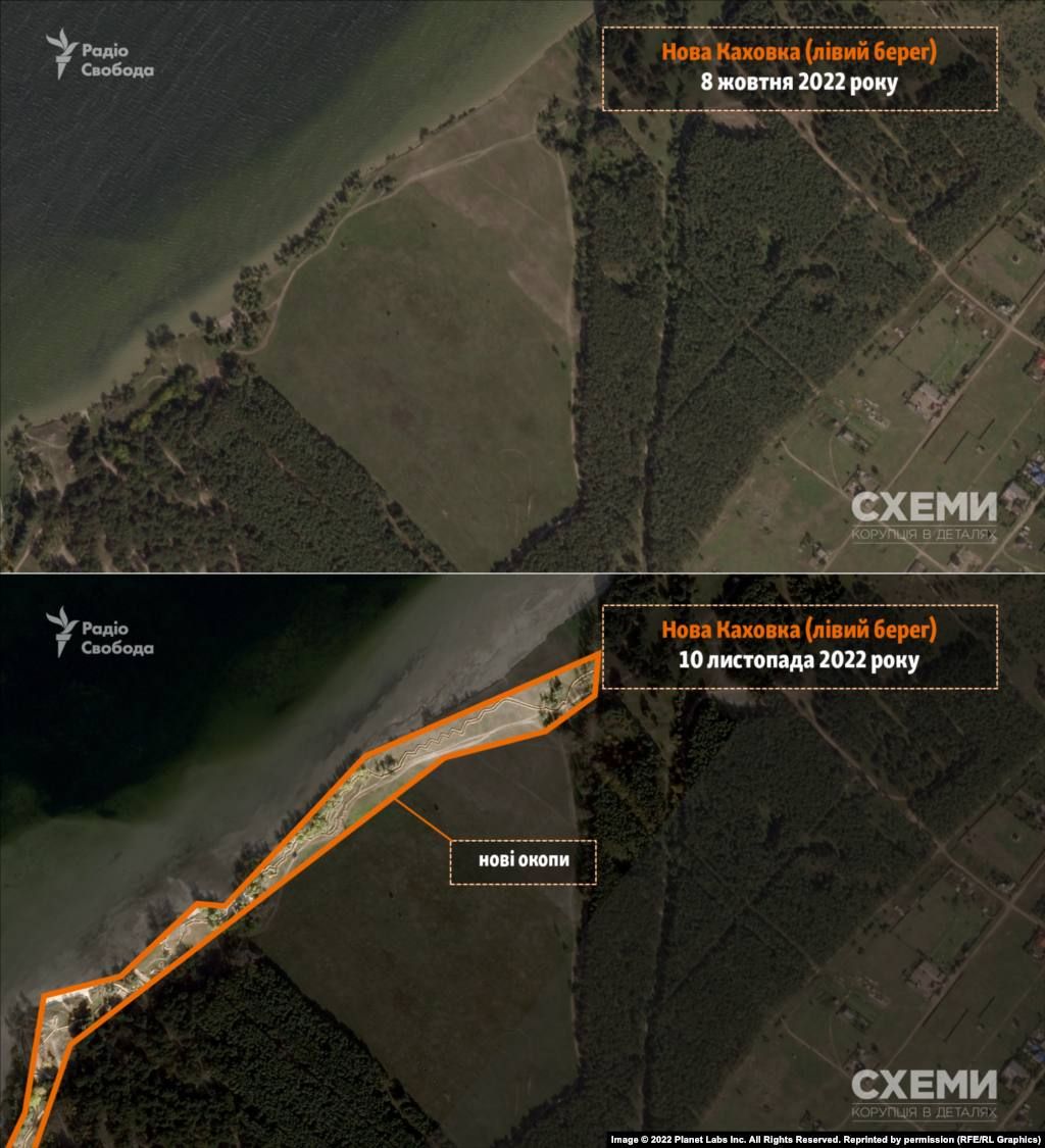 По информации "Радио Свобода", перед отступлением из правобережной части Херсонской области российские войска также вырыли многочисленные окопы и построили укрепления для военной техники на левом берегу Днепра.