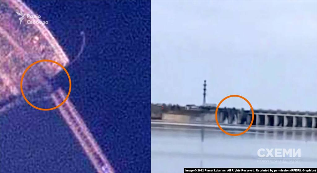 Другая крупная переправа расположена на дамбе Каховской ГЭС. По данным американской компании спутниковых снимков Maxar, после ухода захватчиков из Херсона там можно было увидеть новые значительные разрушения.