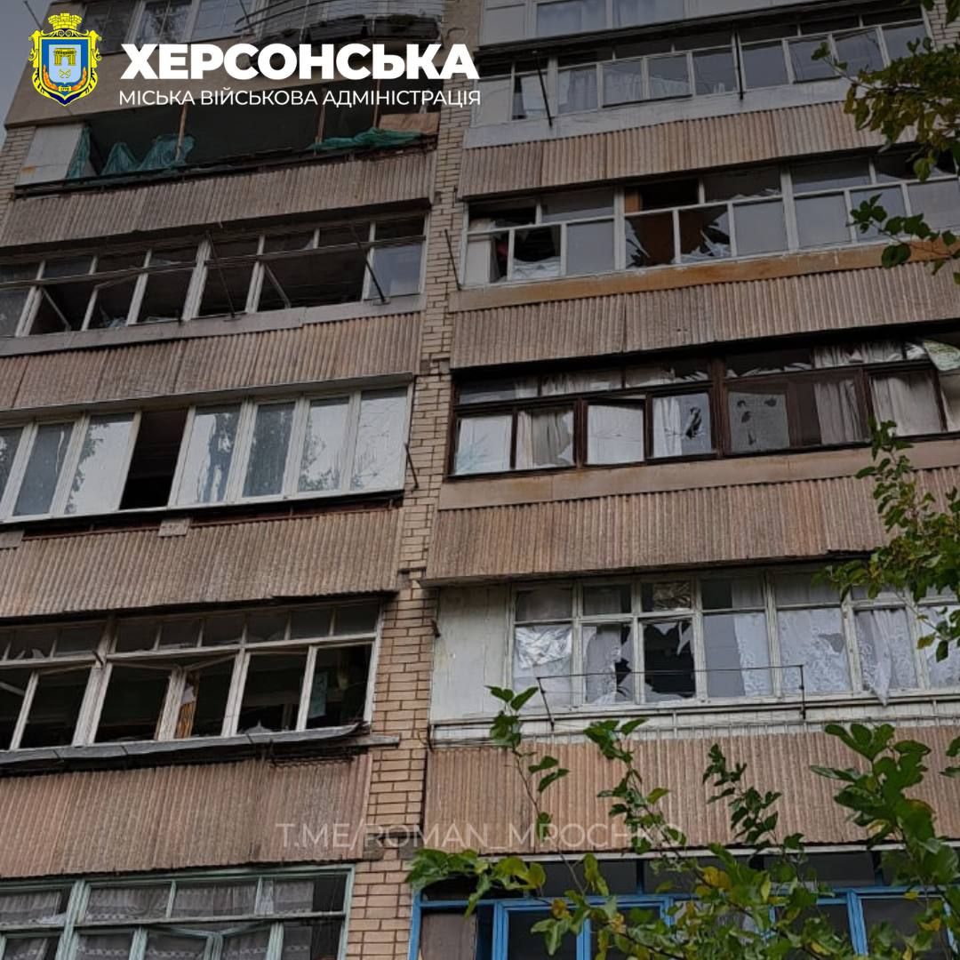Начальник Херсонской городской военной администрации Роман Мрочко в 19:32 сообщил о последствиях обстрела.