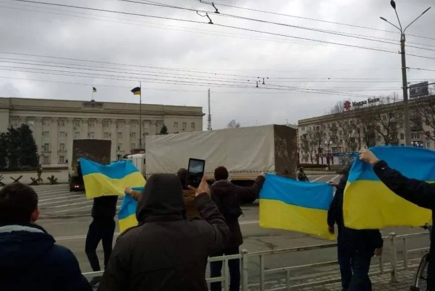 Жители Херсона не собираются участвовать в постановках российских оккупантов. Они вышли к "гуманитарному конвою" с украинскими флагами, чтобы даже российским пропагандистам стало понятно, что против них будет действовать каждый украинец.
