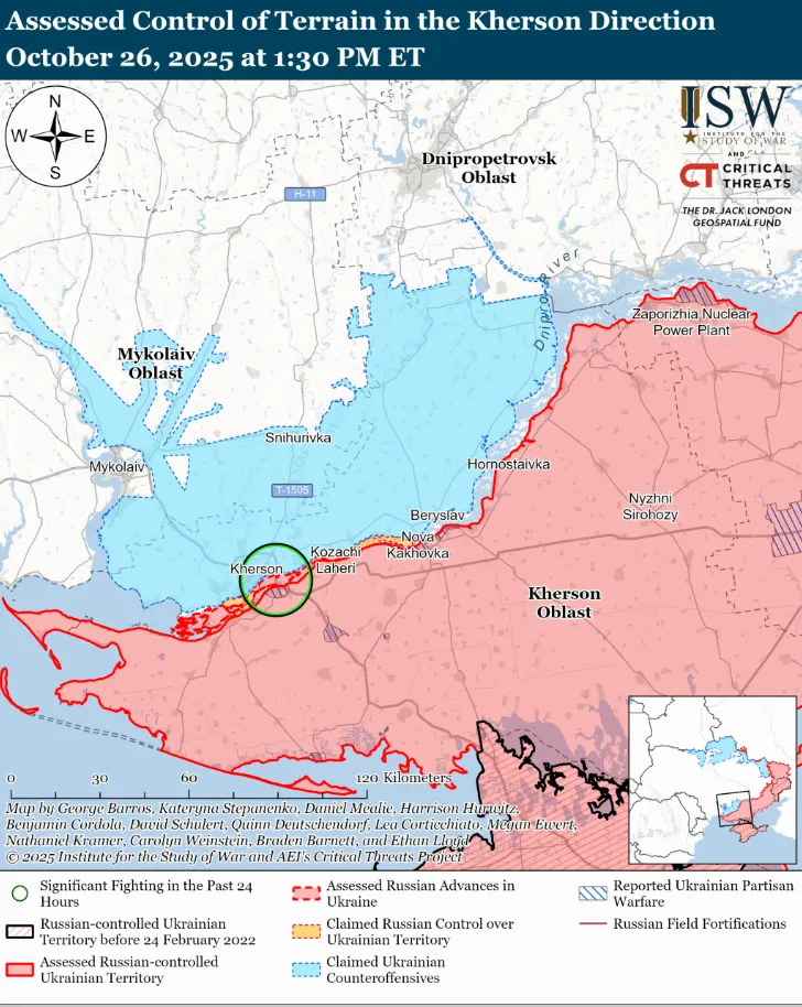Карта боевых действий на Херсонщине 26 октября / ISW