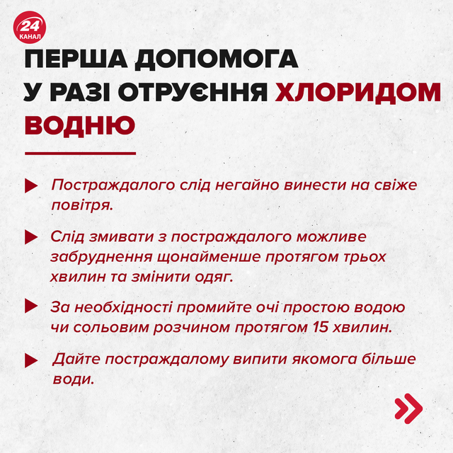 Первая помощь при поражении различными химикатами / Инфографика 24 канал / Источник Минздрав