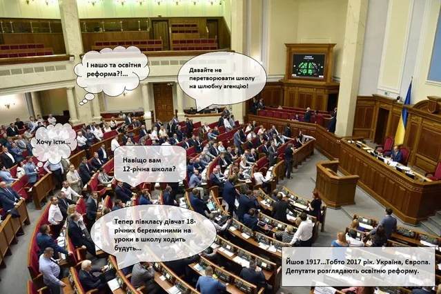 Так, некоторые народные избранники не хотели голосовать за 12-летнюю систему образования, потому что были убеждены, как например, радикал Олег Ляшко, что "18-летние девушки будут выходить из школы беременными".
