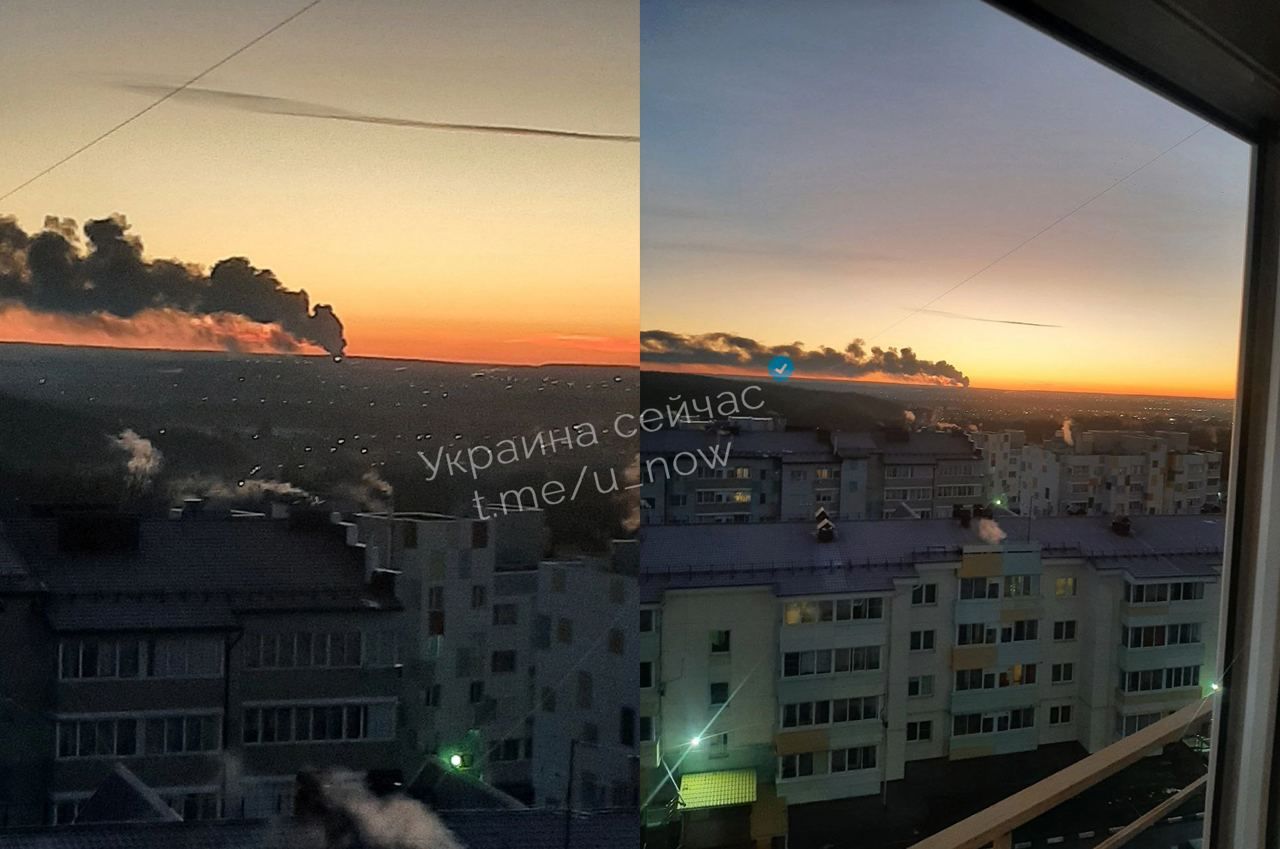 В Курске светает. Так что дым виден еще лучше: смотрите видео
