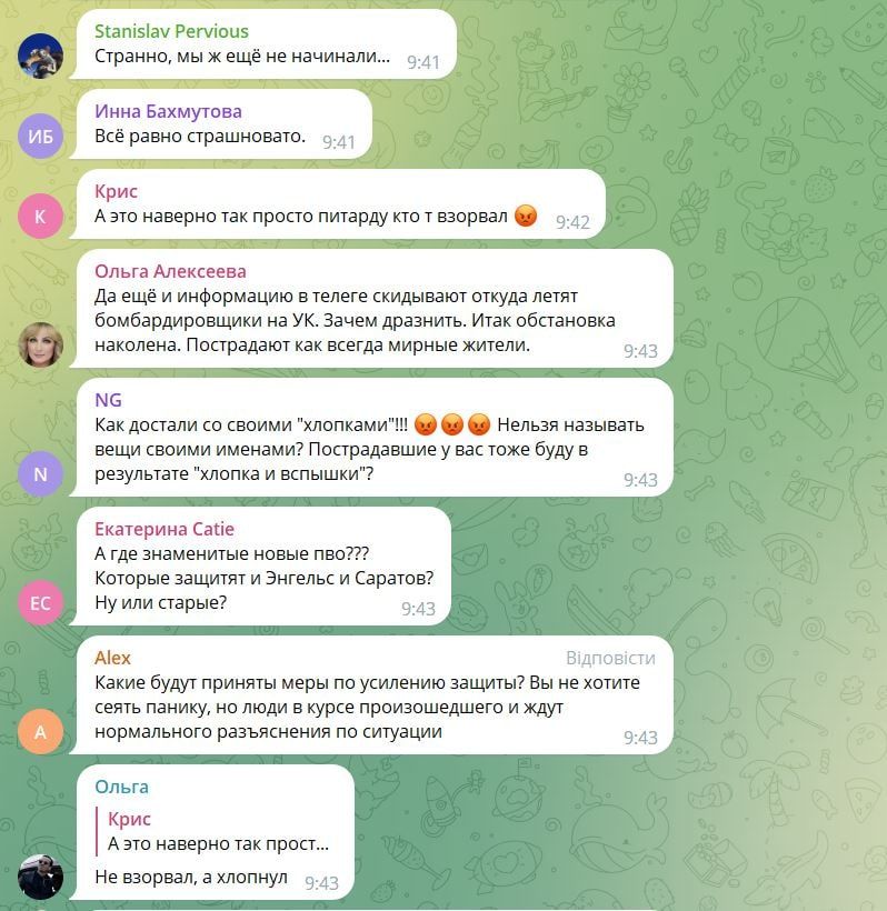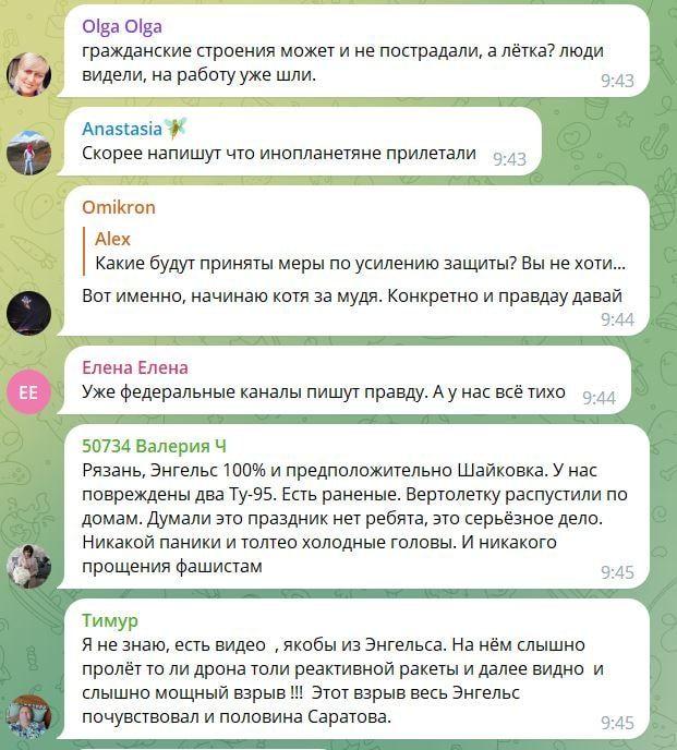 Россияне же не верят Бусаргину. Они пишут, что сами слышали мощные взрывы вблизи базы. Также некоторые отмечают, что мощные звуки взрыва слышала половина Саратовской области. Как россияне реагируют на очередной "хлопок": смотрите фото