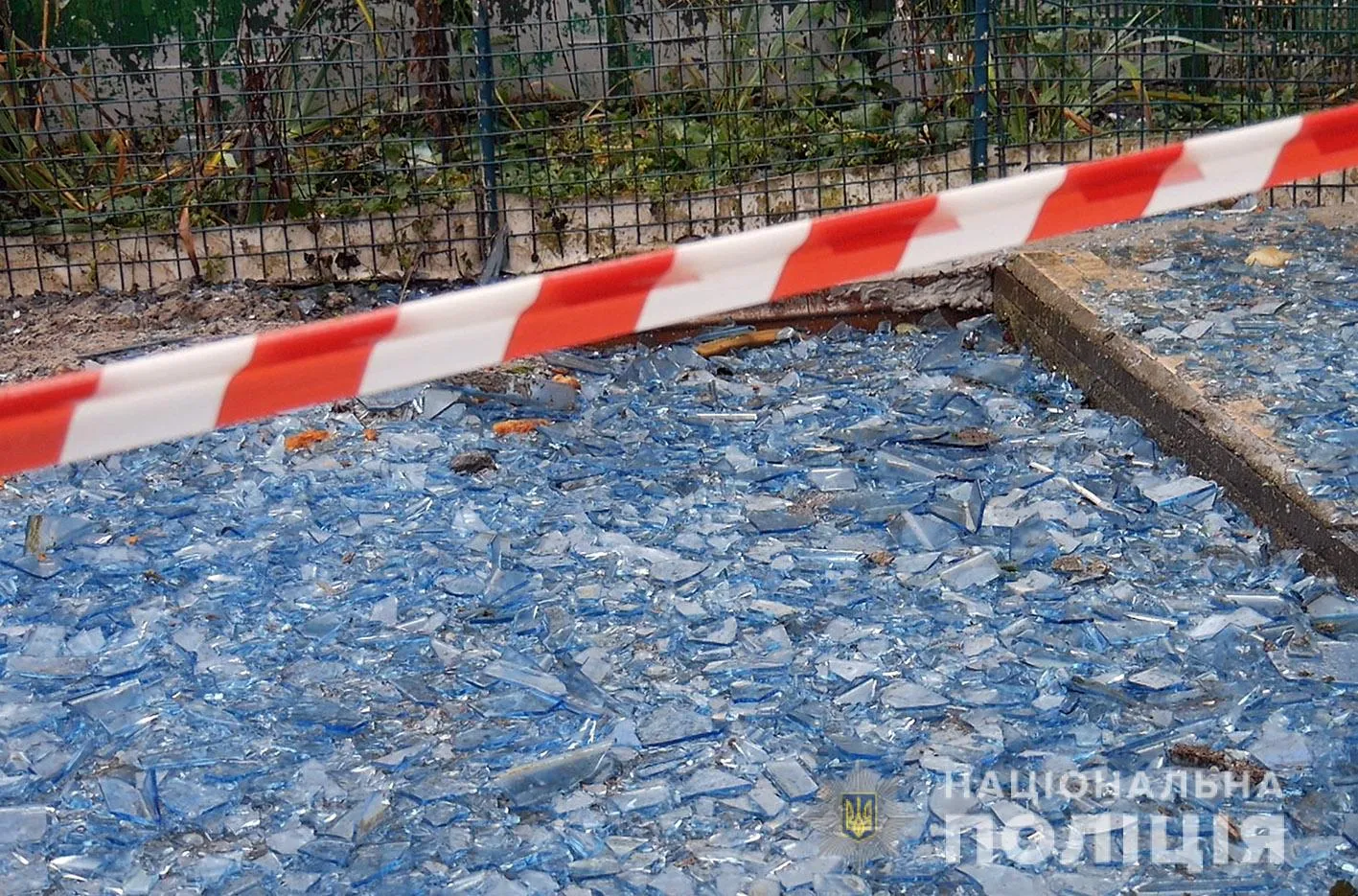 Двор перед подъездом усеяло обломками стекла / Фото пресс-службы полиции Хмельницкой области