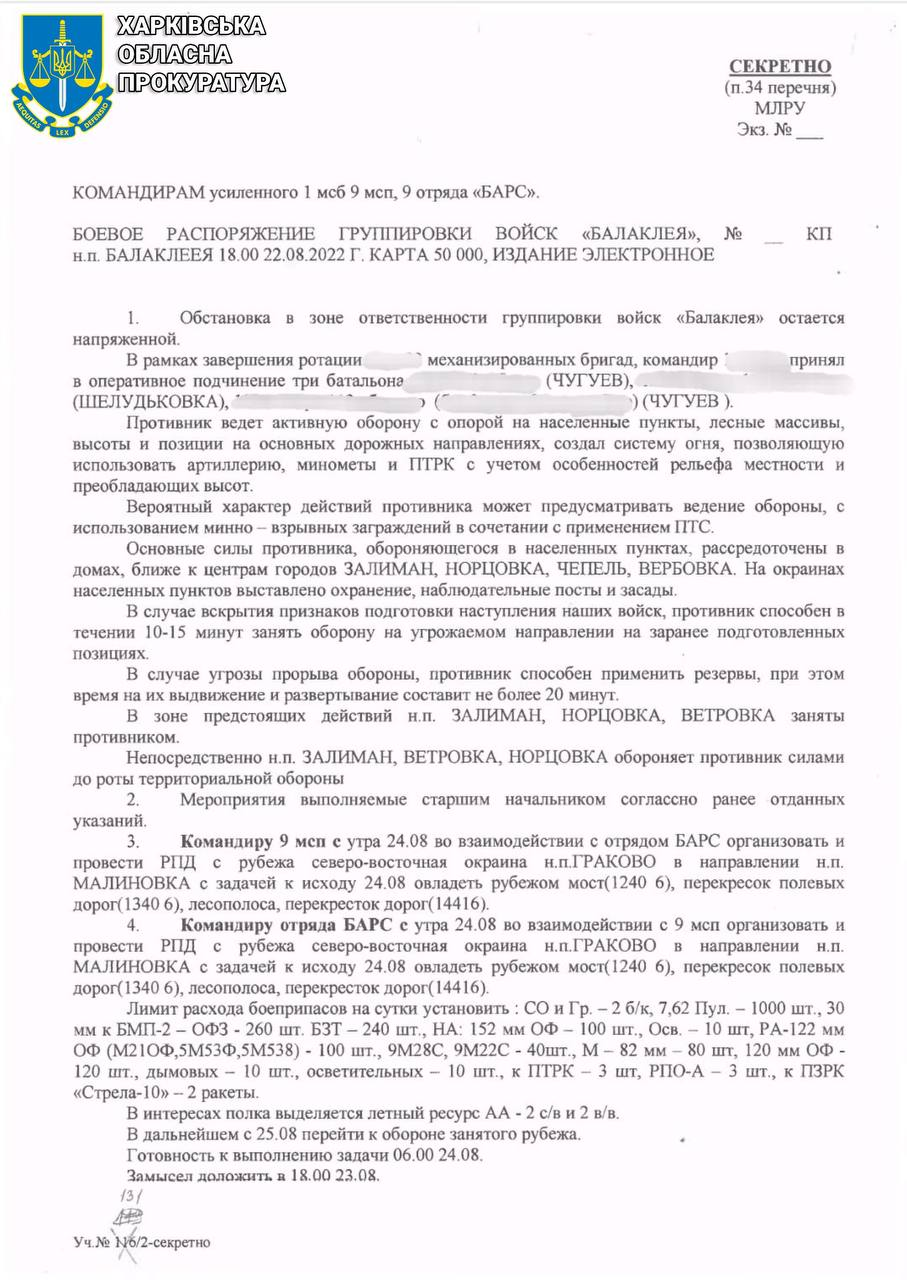 По данным следствия, российский военачальник принимал непосредственное участие в организации захвата Изюмского, Харьковского и Чугуевского районов Харьковской области,
