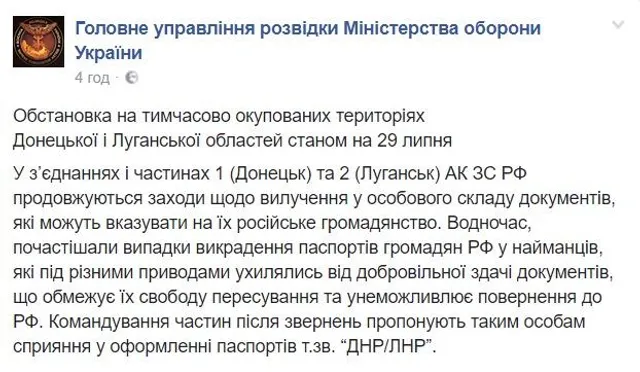 Согласно сообщению, у тех боевиков, которые добровольно отказались сдать паспорта – документы похищали. Отсутствие паспорта ограничивает свободу передвижения и делает невозможным возвращение в Россию.