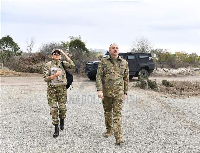 Вместе с главой государства посетила разрушенный войной город и первая леди Мехрибан Алиева, сообщает турецкое издание Anadolu.