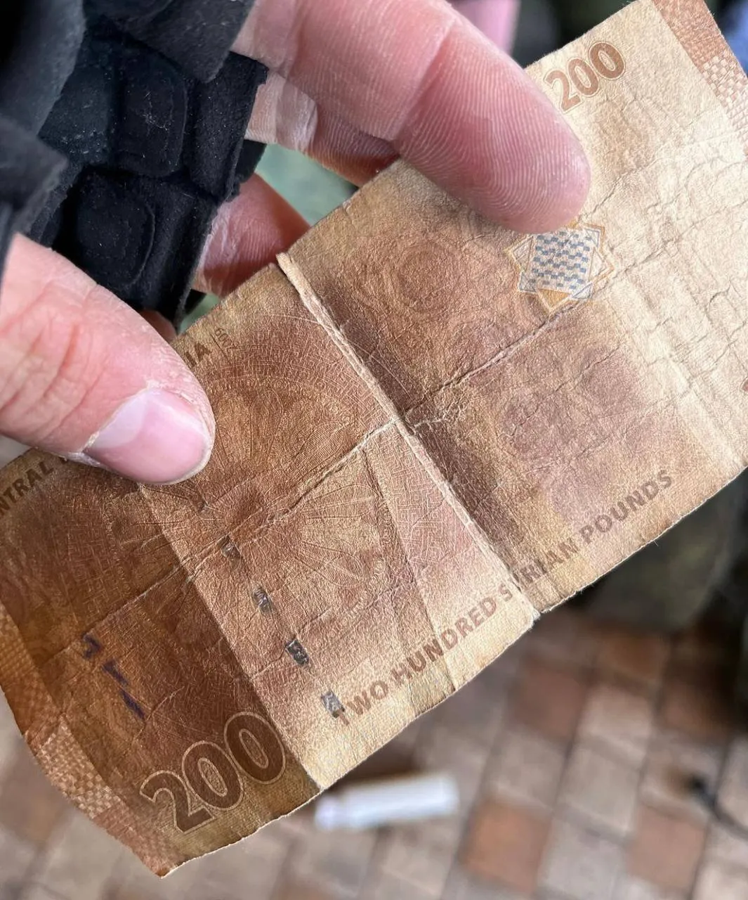 У мертвого оккупанта в кармане нашли денежную единицу Сирии.
