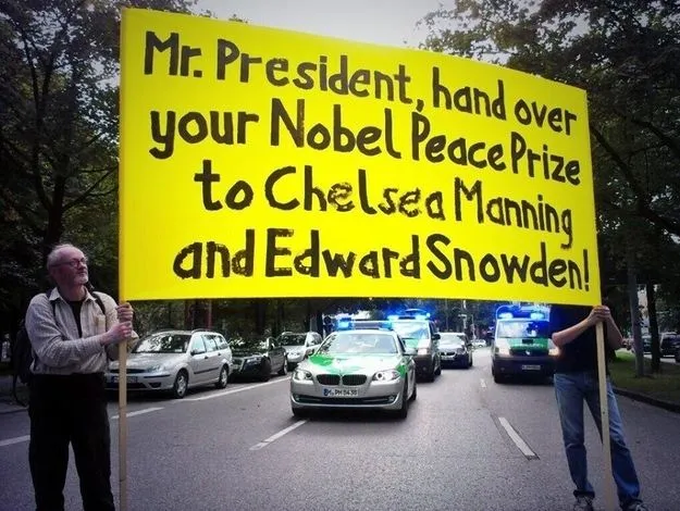 "Господин Президент, отдайте свою Нобелевскую премию Челси Маннингу и Эдварду Сноудену".