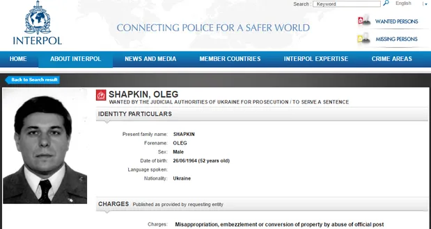Шапкина разыскивает судебная власть Украины для уголовного преследования и наказания.