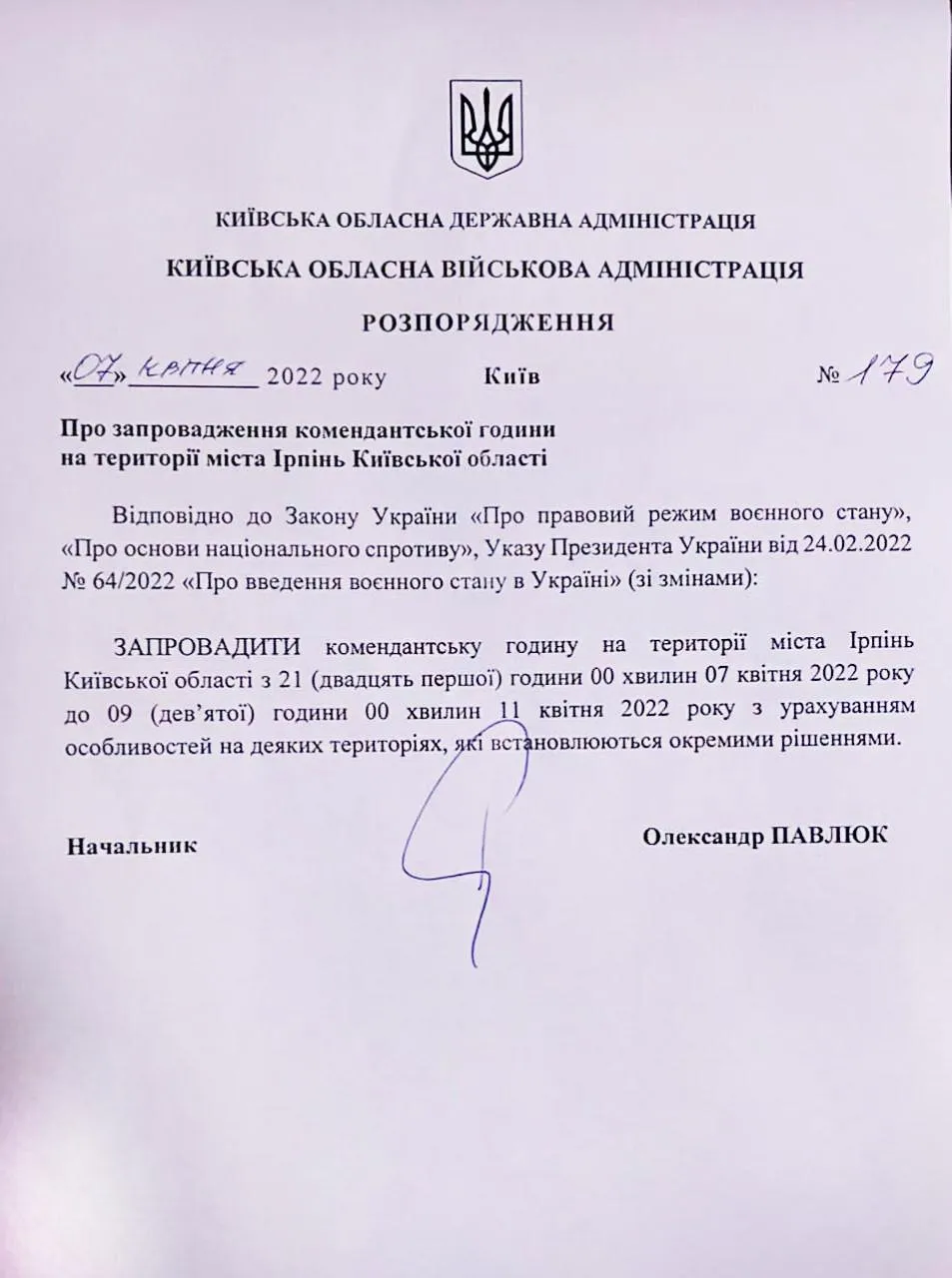 Об этом стало известно в день принятия решения. Ирпенский городской глава Александр Маркушин для подтверждения обнародовал документ указа.