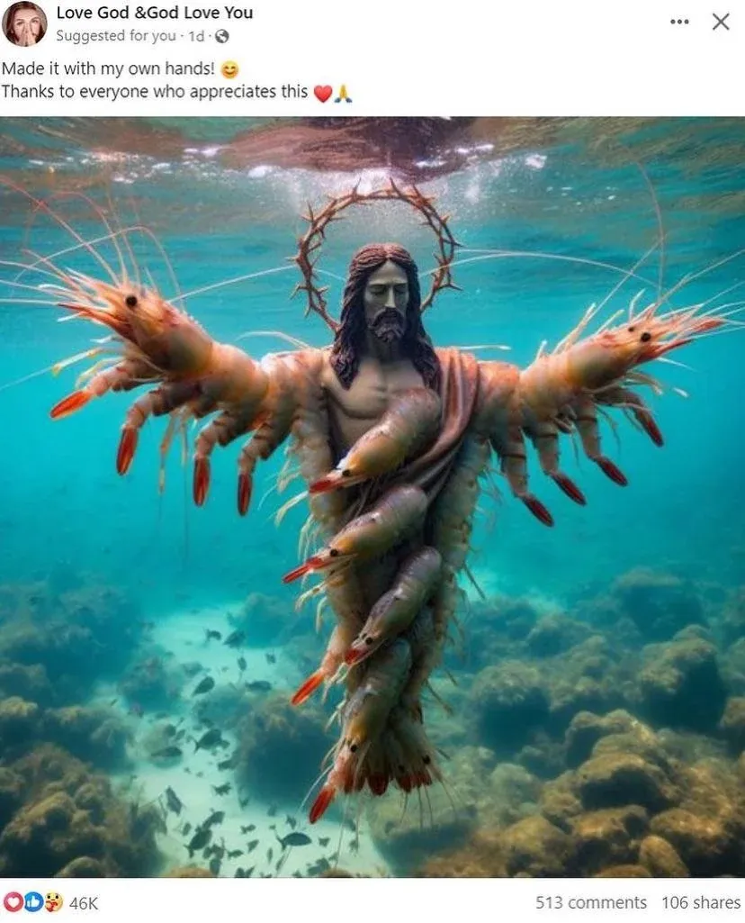 Развитие генеративного искусственного интеллекта в 2022 – 2024 годах привело не только к обсуждениям, какие профессии он заменит, но и к быстрому засорению интернета. Соцсети, в частности Facebook, переполнены низкокачественным сгенерированным контентом, созданным для массового распространения. Обычно это изображения детей или людей старшего возраста с якобы сделанными их руками "поделками", обработки известных людей или вообще что-то абсурдное вроде "креветки – Иисуса".