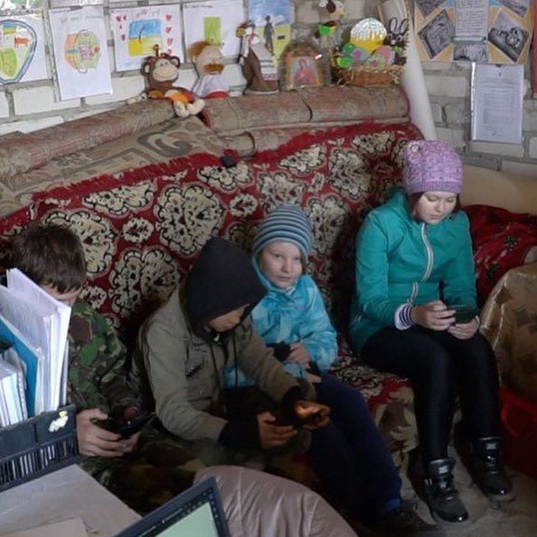 В поселке осталось 17 детей. У себя дома их собирает единственная учительница: помогает проходить тесты и подключаться к онлайн-урокам. Сарайчик со старлинком и генератором у ее дома гордо называется "образовательно-консультационным пунктом".