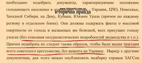 В пояснительной записке Кондрашина, которая есть в "Исторической Правде", говорится: "Учитывая "украинский фактор", надо подбирать документы с таким расчетом, чтобы они доказывали универсальный характер хлебозаготовок 1932 года".
