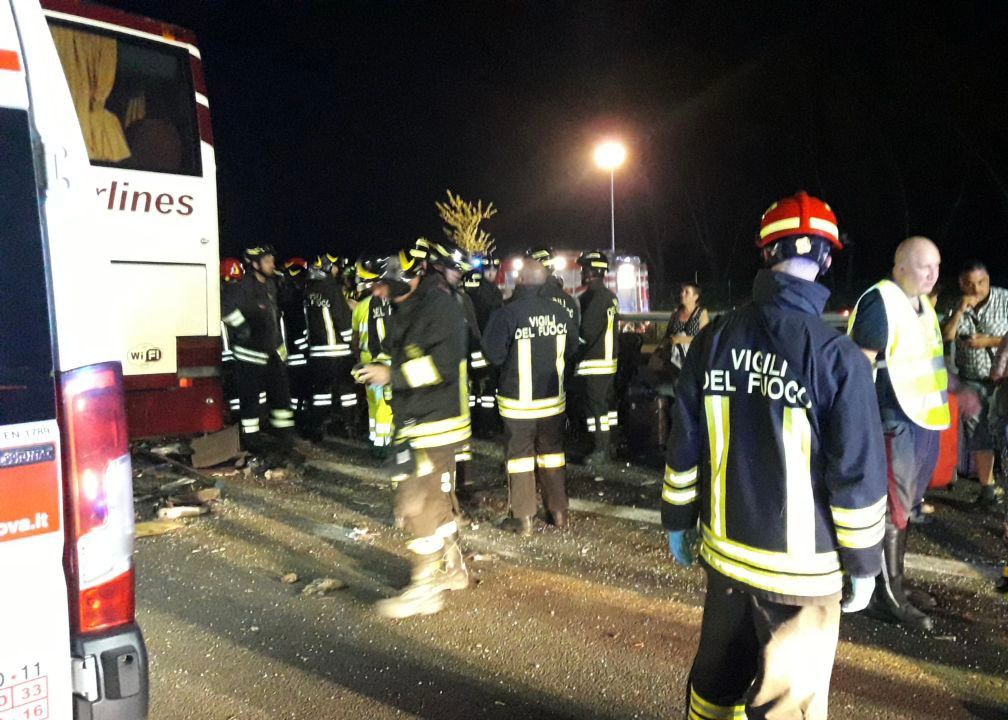 Еще 27 человек не пострадали в результате аварии. После того как их осмотрели медики, пассажиров автобуса отправили в муниципальный офис службы гражданской защиты региона Фриули-Венеция-Джулия. В настоящее время участок автомагистрали, где произошло ДТП, перекрыт, чтобы спасатели смогли ликвидировать последствия аварии.