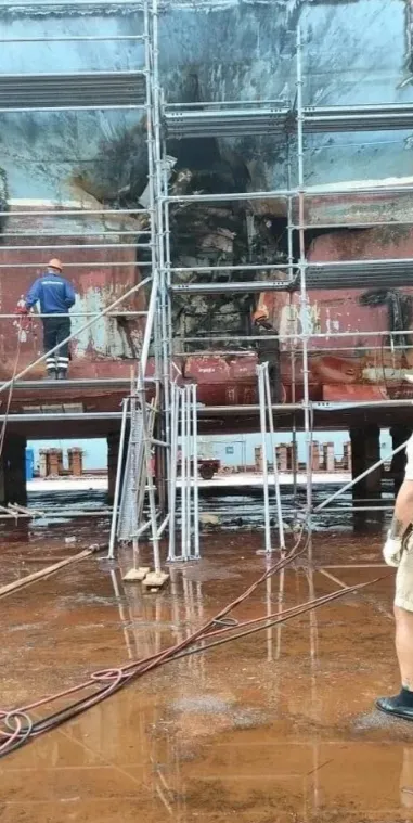 "Оленегорский горняк" после встречи с морским дроном / Фото из соцсетей