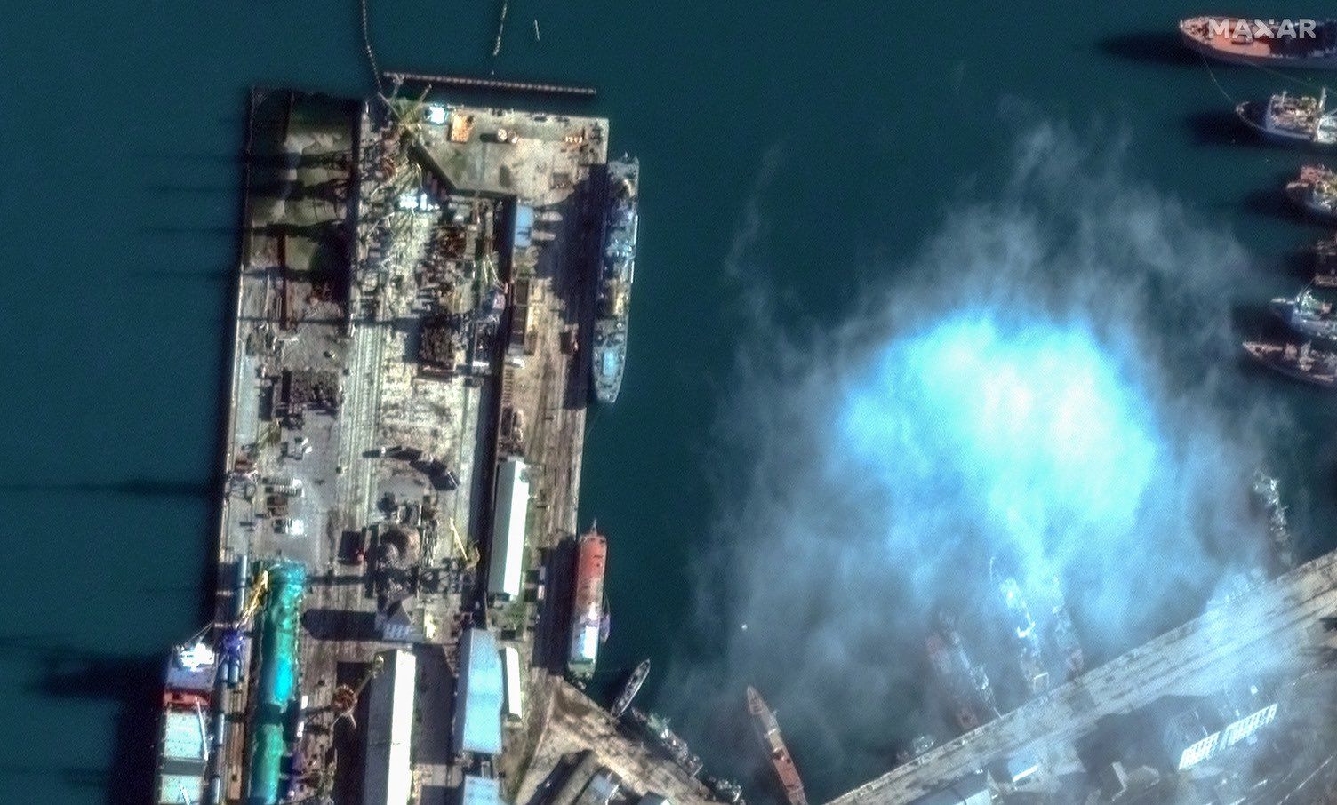 Остатки российского "Новочеркасска" после встречи с украинскими ракетами / Фото Maxar Technologies