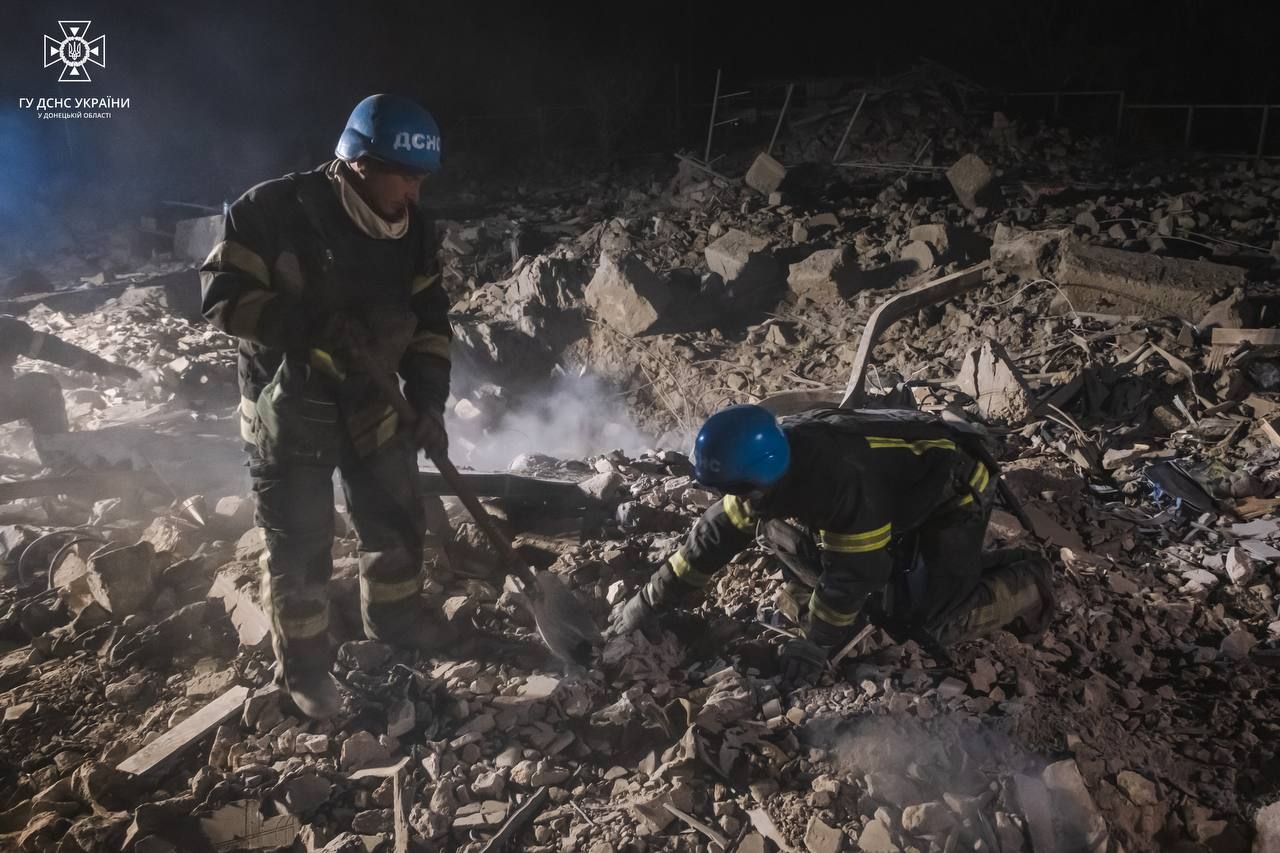В самом городе Покровске на месте двух разрушенных частных жилых домов спасли одного человека. Также работники ГСЧС извлекли тело женщины. Продолжаются аварийно-спасательные работы по поиску 4 человек, из них 2 детей.