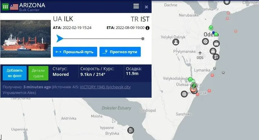 - Судно Mv Arizona доставит из Черноморска в Турцию 48,4 тонн кукурузы.