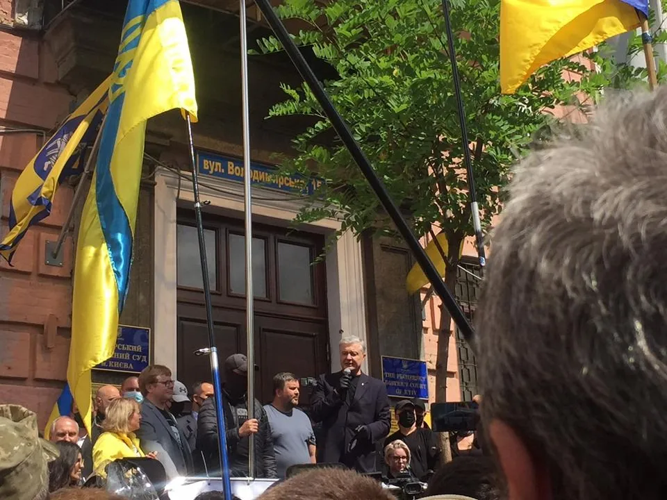 Сам Петр Порошенко пришел на судебное заседание. Перед этим он выступил перед своими сторонниками и заявил о политических преследованиях власти. Затем пятый президент пошел на заседание суда.