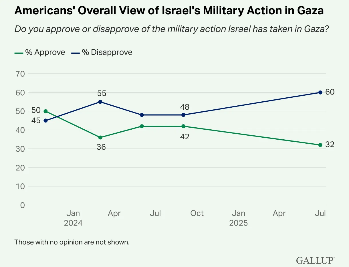 Чем дольше длится война в Секторе Газа, тем меньше американцев поддерживают военные действия Израиля / Gallup