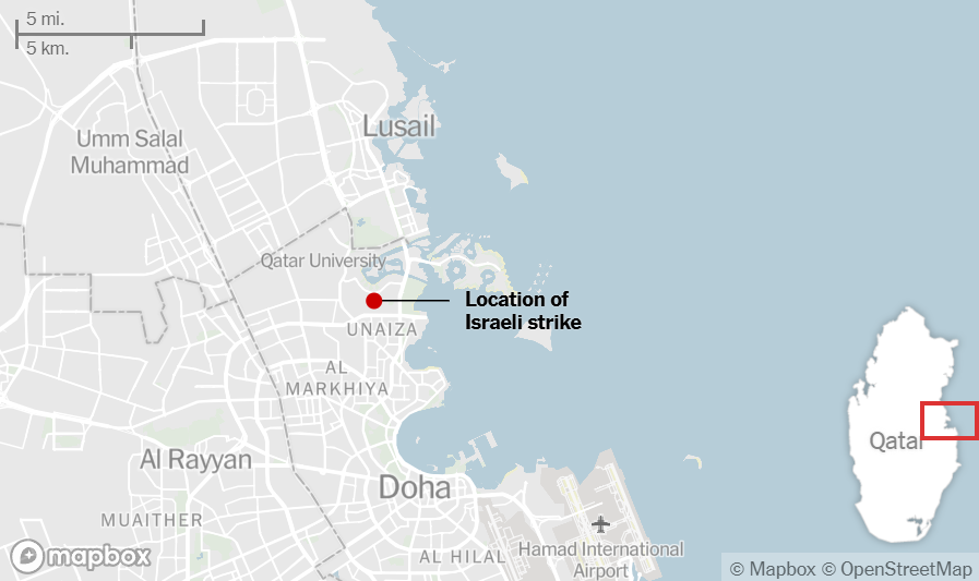 Но еще до начала наземной операции Израиль совершил еще один неожиданный акт. Авиация ЦАХАЛ нанесла удар по столице Катара, городу Доха, где в этот момент проходила встреча руководства ХАМАС. Несмотря на то, что Израиль заявил, что принял все возможные меры для избежания случайных жертв среди гражданских, сам удар пришелся по одному из жилых районов города.