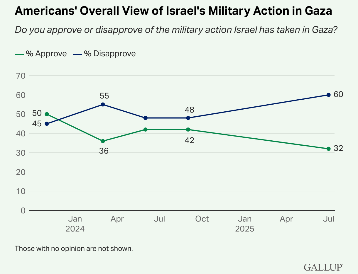 Чем дольше длится война в Секторе Газа, тем меньше американцев поддерживают военные действия Израиля / Gallup