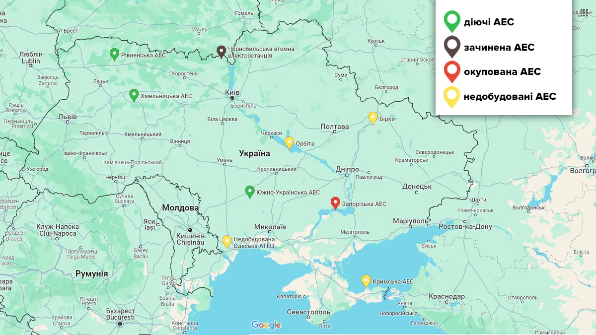 Под контролем Украины остаются три атомные электростанции: Хмельницкая, Ровненская и Южно-Украинская. Крупнейшая станция, Запорожская, уже более двух лет в оккупации с постоянным риском аварии. Еще несколько объектов так и не были достроены с советских времен.