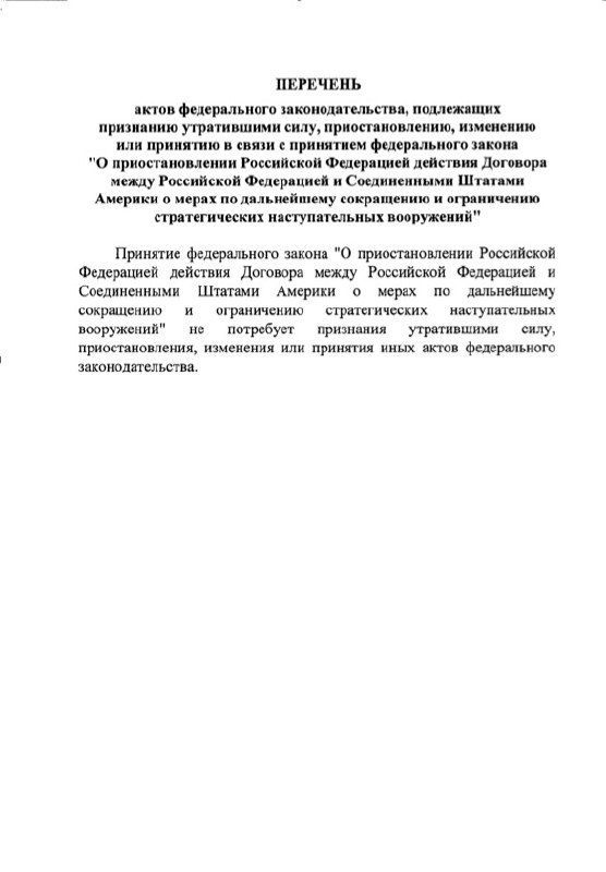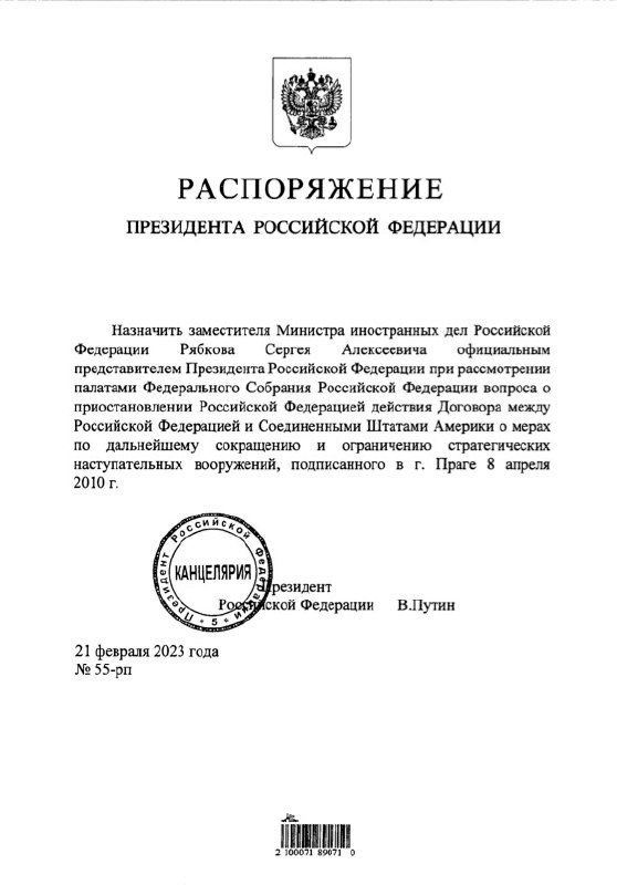 Кроме того, в МИД России заявили, что страна-террорист не будет наращивать ядерный арсенал после приостановления договора. В заявлении ведомства уже традиционно возложили ответственность за решение приостановить действие ДСНВ на США. ️