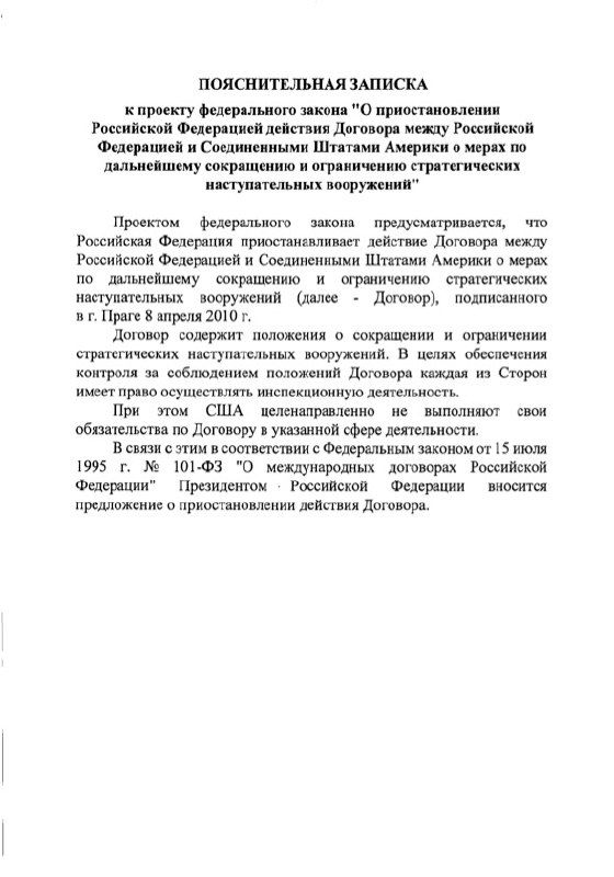 Во время своего обращения к федеральному собранию Путин объявил о временной остановке участия России в ДСНВ.