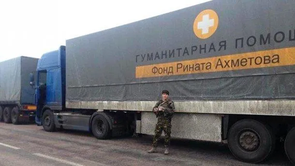 В середині грудня 22 вантажівки фонду Ріната Ахметова зупинять бійці батальйону "Дніпро-1". Вони заявлять, що знайшли в гуманітарці Ахметова термобілизну і бушлати призначені для бойовиків. Невдовзі з’явиться інформація, що окремі добровольчі батальйони домовились блокувати проїзд "гуманітарних конвоїв".
