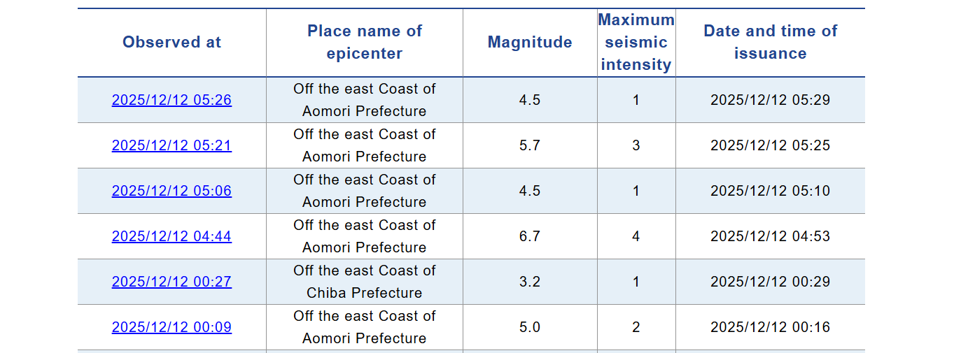 В пятницу, 12 декабря, у побережья префектуры Аомори на северо-востоке Японии произошло землетрясение. Предварительно его магнитуду оценивают в 6,7.
