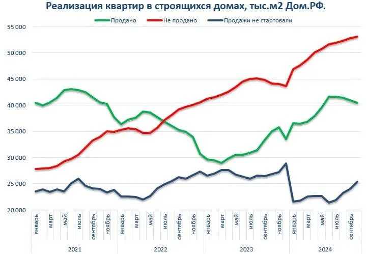 Застройщики же, несмотря на все негативные прогнозы, почти три года отказывались от снижения цен, а также продолжали возводить новые и новые жилые комплексы в надежде, что государство и в дальнейшем будет финансировать льготную ипотеку, а люди будут покупать у них квартиры. Так было вплоть до момента, когда в России накопилась едва ли не критическая масса кредитов с повышенным риском, розданных гражданам. В связи с этим российские чиновники отменили специальные ипотечные программы, а с учетом того, что именно на льготников приходилось почти половина проданной первичной недвижимости, продажи застройщиков мгновенно упали чуть ли не до нуля. Уже в сентябре 2024 года количество нереализованных квартир по всей России достигло рекордной отметки в 55 миллионов квадратных метров.