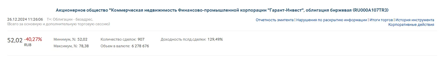 Акции "Гарант-Инвеста" скатились до уровня мусорных после объявления об отзыве лицензии / Скриншот с российских ресурсов