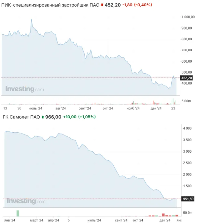 На балансе у банков по состоянию на конец 2024 года накопилось 9 триллионов ипотечных кредитов, нуждающихся в субсидировании. Ни одно из финансовых учреждений по отдельности не имеет таких резервов. Более того, согласно нормативным актам, совокупные резервы всей российской банковской системы должны достигать отметки в 5 триллионов рублей. И на фоне этого премьер Мишустин в угоду Путину пытался протолкнуть вопрос снятия лимитов с семейной ипотеки. К сожалению для нас, это решение не было принято. Так что "Пик", "Самолёт" и другие девелоперы-гиганты входят в 2025 год на грани банкротства.