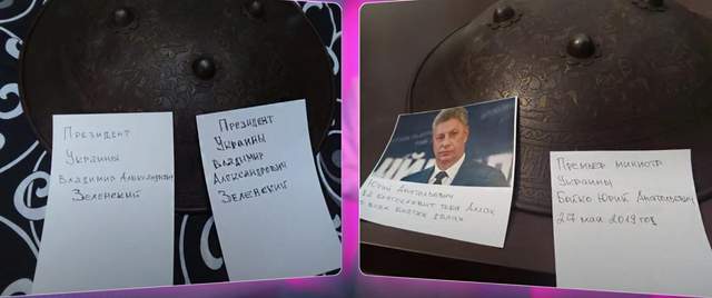 Также журналисты обнаружили доказательства ритуала с фотографиями Владимира Зеленского и Юрия Бойко. На фото Зеленского писало "президент Украины", а на фото Бойко "премьер-министр Украины", а также "Благослови тебя Аллах". Карточки с надписями стояли на железном щите.