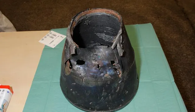 Также в прокуратуре обнародовали фотографию находки. Нидерландские СМИ пишут, что это — первый случай, когда следователи сообщают о находке такого большого фрагмента ракеты в зоне падения MH17.