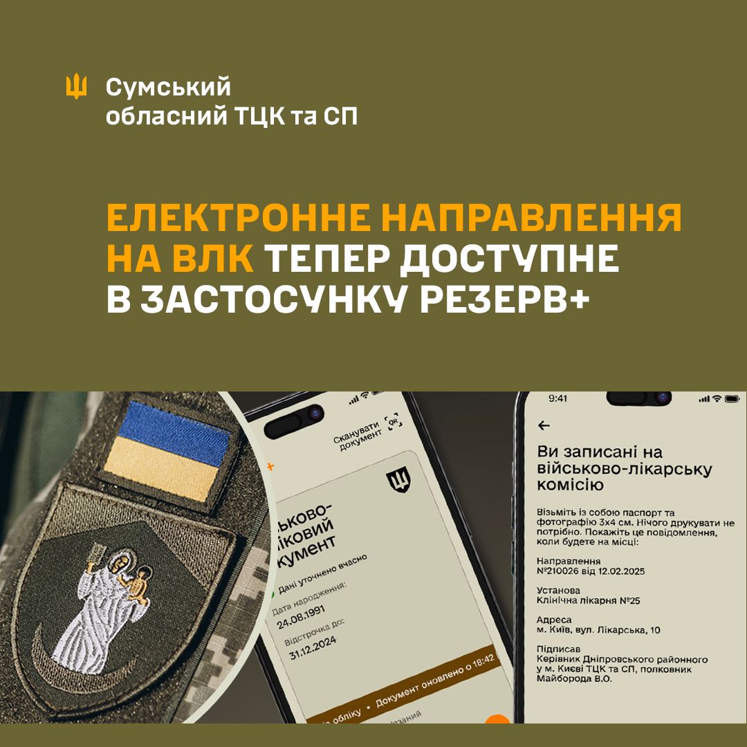 Об этом рассказывает 24 Канал со ссылкой на Сумской областной ТЦК и СП. Теперь военнообязанные могут самостоятельно подать запрос на прохождение военно-врачебной комиссии через мобильное приложение Резерв+.