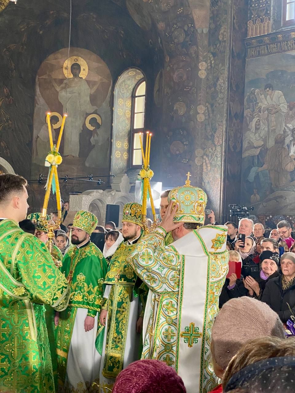 Литургия проходила в Киево-Печерской Лавре под руководством митрополита Епифания.