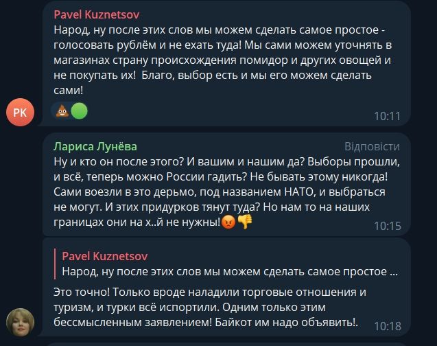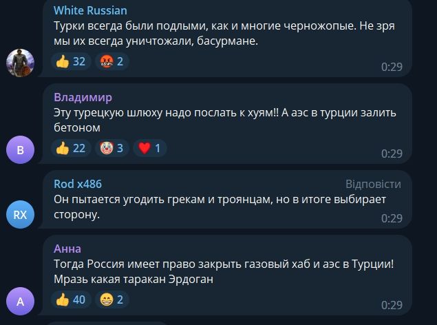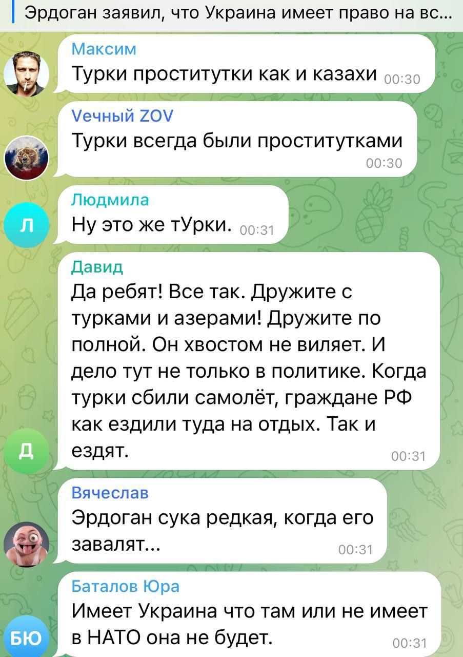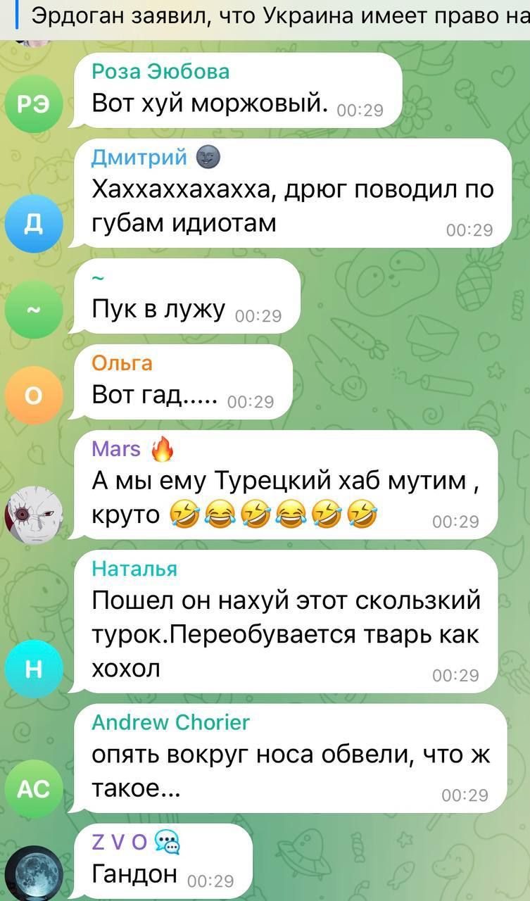 Кроме того, Реджеп Эрдоган выразил поддержку Украине и заявил, что и дальше будет помогать нашей стране. Как россияне "взорвались" проклятиями после слов лидера Турции – сообщает 24 Канал.
