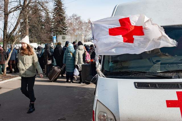 Он поделился фотографиями людей, которые в очереди на эвакуацию. Среди людей – много маленьких детей.